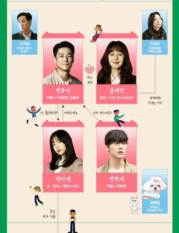 변무진은 애연과의 로맨스를 다시 시작하고 싶고, 금애연은 죽도록 미워했던 남편이지만 자꾸만 흔들리게 되고, 엄마를 예전이나 지금이나 힘들게 하는 아빠를 받아들일 수 없는 변미래와 아빠가 부자가 되어 돌아와 그저 기쁜 변현재까지. 가족 x멜로드라마는 가족이라는 틀 안에서의 복잡한 인간관계와 예측 불가능한 사랑의 흐름을 그리며 시청자들에게 웃음과 감동을 선사할 예정입니다.