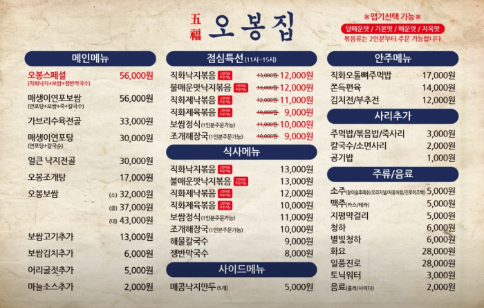 오봉집 메뉴
