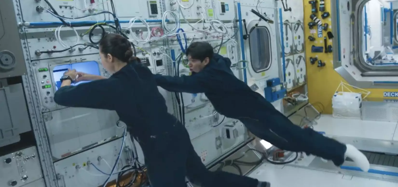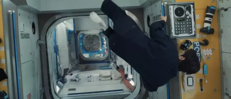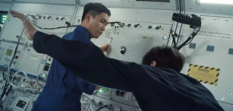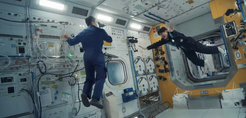 무중력 상태를 표현하기 위해 와이어 시스템, 그린맨 지원, 컴퓨터 그래픽 합성, LED 월 기술 등 다양한 특수 효과 기술이 사용되었습니다.