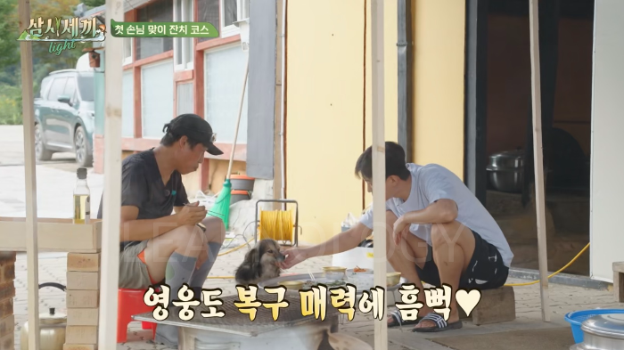 귀여운 강아지 복구와도 함께 시간을 보내고 맛있는 저녁과 아침까지 함께 하는 모습이 방송되었습니다.