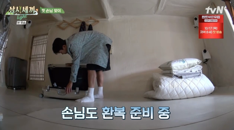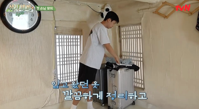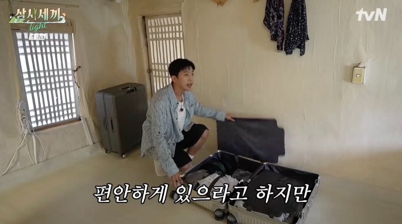 삼시세끼에 왔으니 이제 일을 해야죠. 옷을 갈아입으려고 준비합니다.