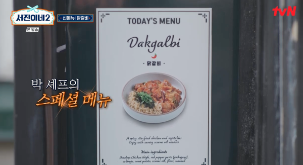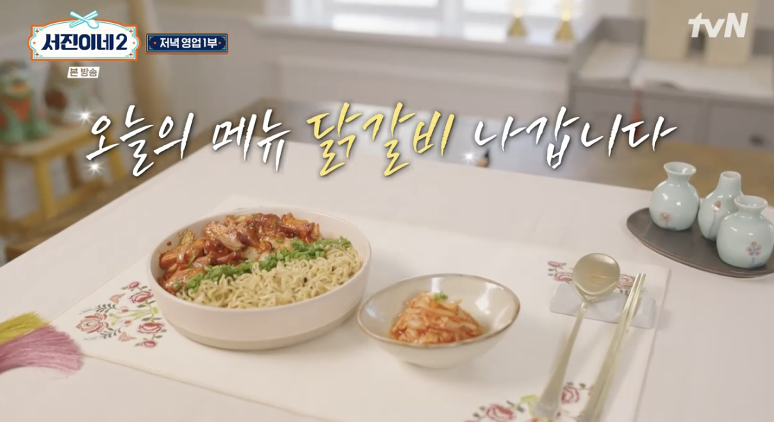 서진이네2가 오픈하면서 꼬리곰탕, 비빔밥, 소갈비찜, 매운 소갈비찜이 주요 메뉴였는데요. 이번화에서는 박서준의 비장의 무기 닭갈비가 신메뉴로 나왔습니다.