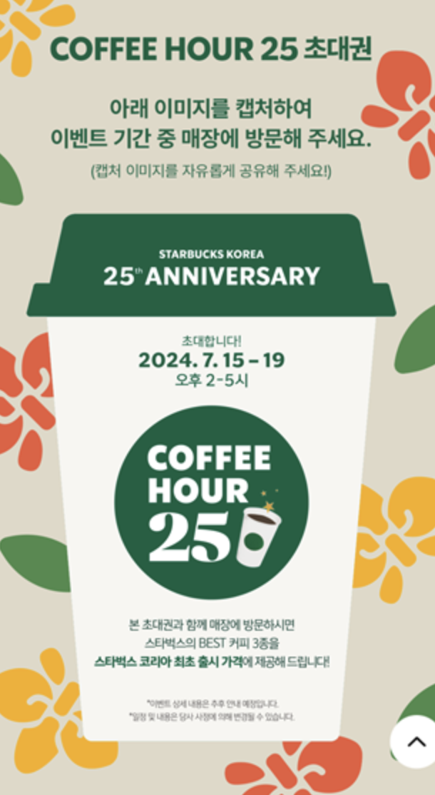 이번 스타벅스 25주년 기념행사는 많은 고객들에게 특별한 혜택을 제공하기 위해 기획되었는데요. 행사 기간 동안 매장을 방문해 스타벅스의 인기 메뉴를 저렴한 가격에 즐겨보시기 바랍니다.