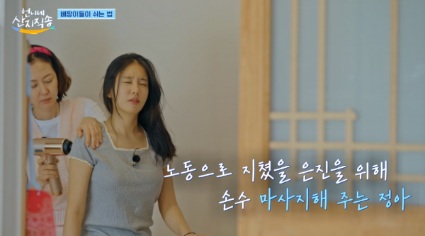 언니네 산지직송 염정아 캐리어 핑크 크로스 가방 염정아 마사지기 안마기 제품 정보