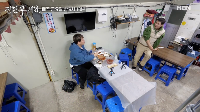 깜깜한 밤 맛집에 도착한 전현무와 곽준빈은 트럼프 내외가 방한했을 당시 만찬 요리로 나온 독도새우를 언급하며 기대를 감추지 못합니다.