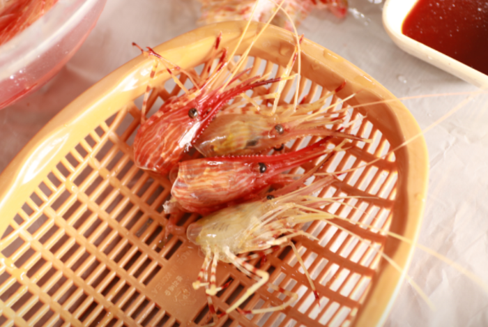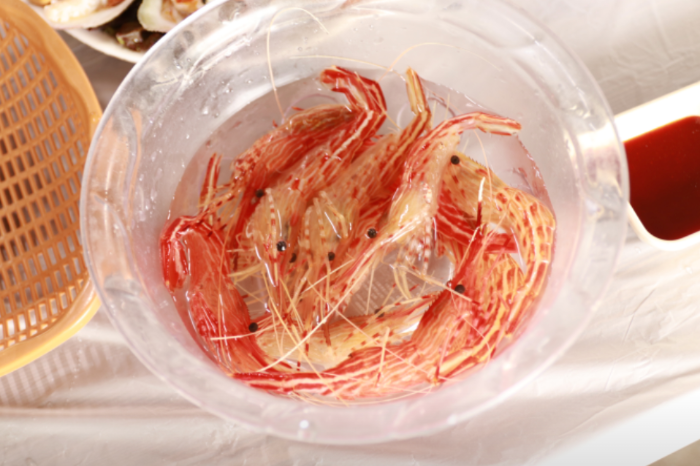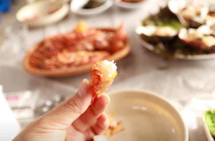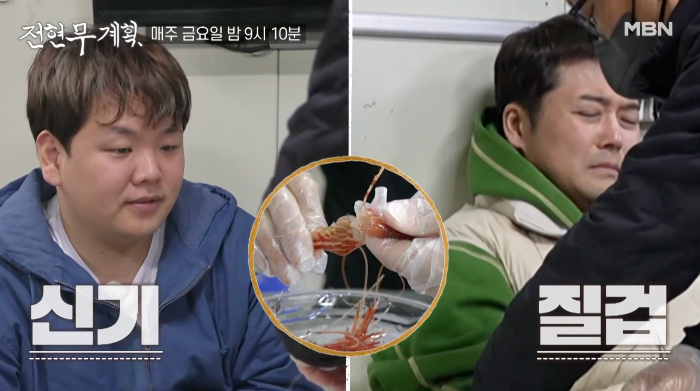 곽튜브는 용기 있게 꽃새우, 닭새우 회를 차례대로 맛본 후에 "너무 맛있다"라고 감탄합니다.