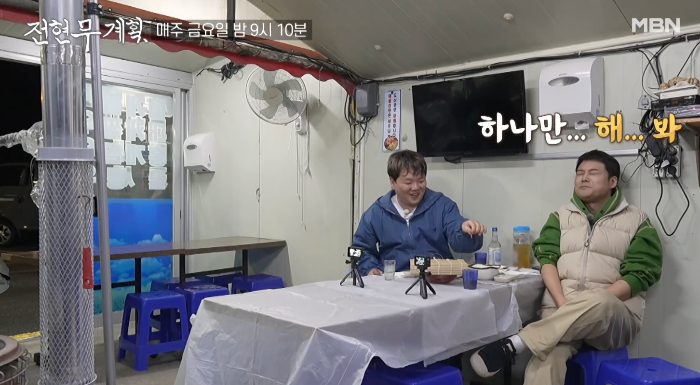 깜깜한 밤 맛집에 도착한 전현무와 곽준빈은 트럼프 내외가 방한했을 당시 만찬 요리로 나온 독도새우를 언급하며 기대를 감추지 못합니다.