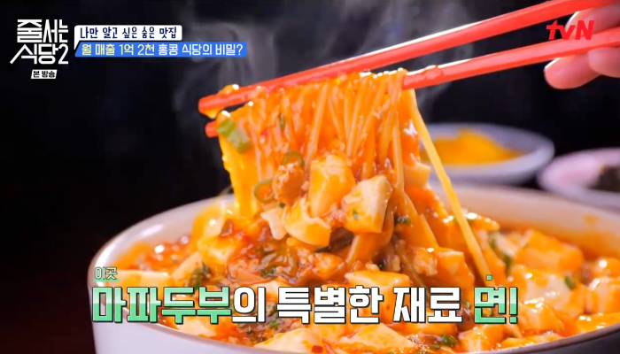 자체 제작한 탱글한 식감의 연두부에 면을 추가해서 먹는 시그니처 메뉴 마파두부.