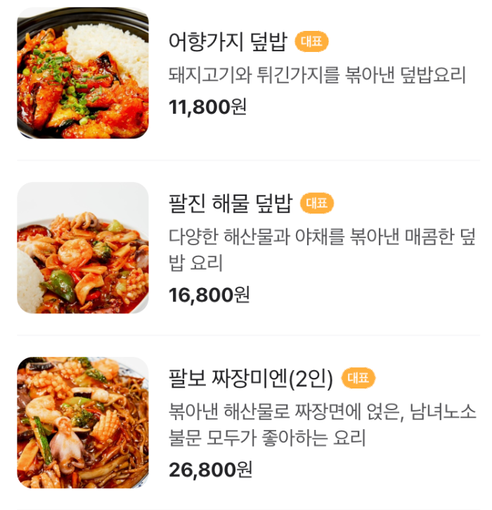 - 팔진 해물 덮밥 - 다양한 해산물과 야채를 볶아낸 매콤한 덮밥 요리 - 16,800원