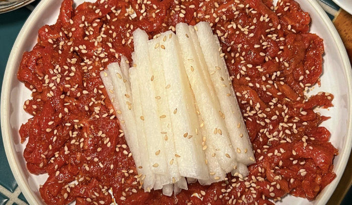 이후에 고추냉이를 곁들여 먹으면 고소하고 알싸한 맛이 입안 가득 퍼져 한우의 진한 맛과 향을 느낄 수 있습니다.