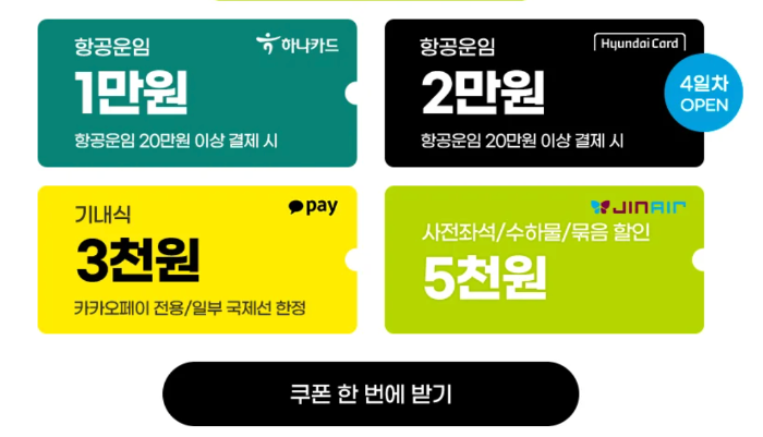 진에어는 이번 행사 기간 동안 결제 수단 별로 다양한 혜택도 마련했습니다. 관련 내용은 진에어 홈페이지를 확인하세요.
